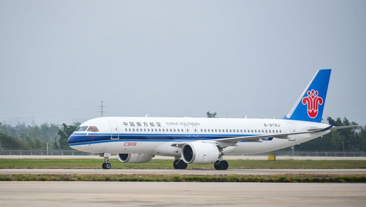 2024年12月11日,由C919執(zhí)飛的中國(guó)南航CZ6786航班在??诿捞m國(guó)際機(jī)場(chǎng)降落,國(guó)產(chǎn)大飛機(jī)C919在海南的商業(yè)飛行“首秀”順利完成。新華社記者 楊冠宇 攝