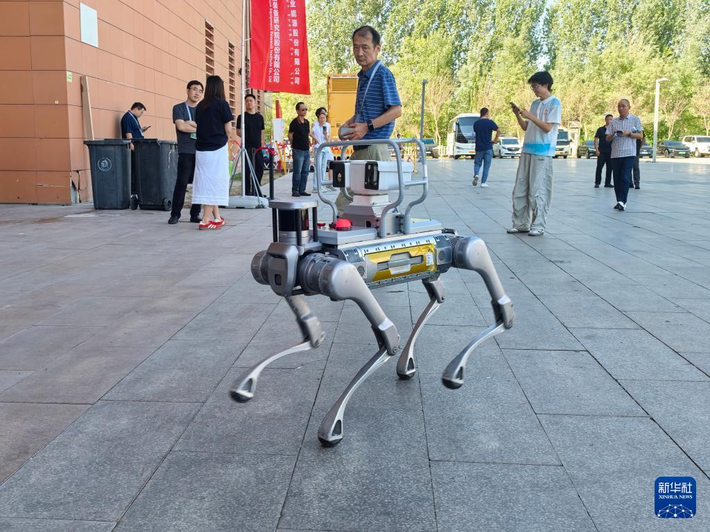 這是8月13日在展覽會上拍攝的可用于油氣生產場景的機器狗。