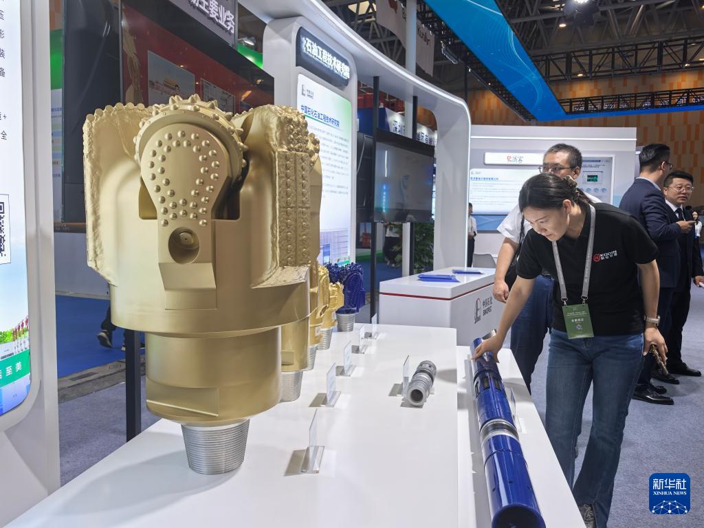 8月13日,觀眾在展覽會上了解鉆頭鉆桿裝備。