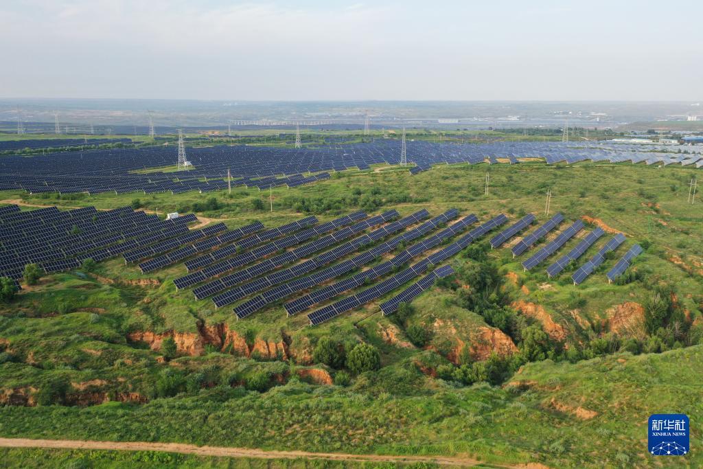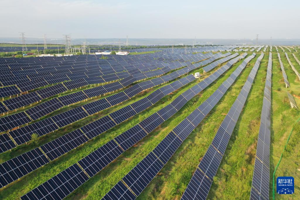 這是7月30日拍攝的天驕綠能50萬千瓦采煤沉陷區(qū)生態(tài)治理光伏發(fā)電示范項(xiàng)目區(qū)(無人機(jī)照片)。