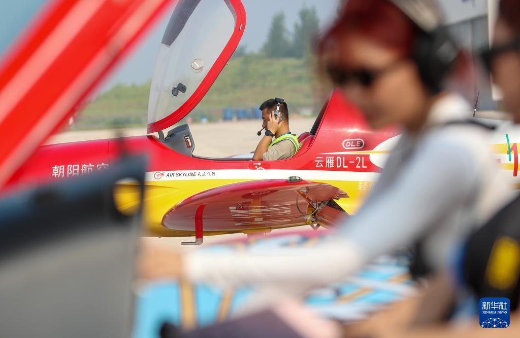8月24日,在位于山東萊西市店埠鎮(zhèn)的青島萊西通航產(chǎn)業(yè)園,飛行員顧兆一做航前準(zhǔn)備。