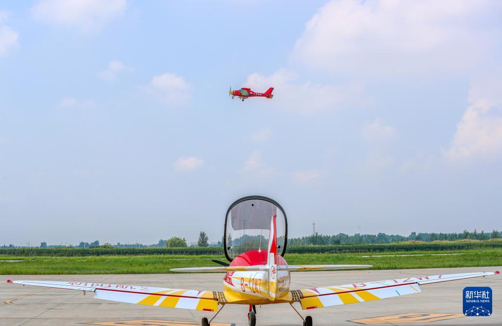 8月24日,在位于山東萊西市店埠鎮(zhèn)的青島萊西通航產(chǎn)業(yè)園,飛行愛好者駕駛輕型運(yùn)動(dòng)飛機(jī)。