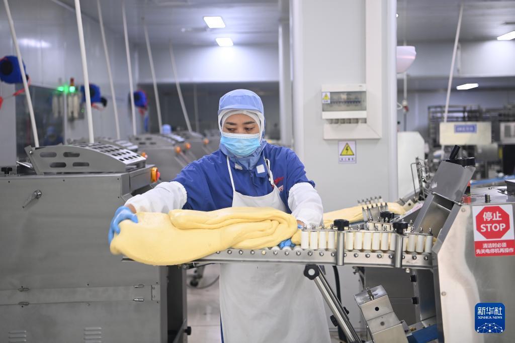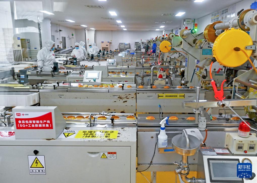 8月19日,工人在福建盼盼食品集團(tuán)5G智慧工廠和面。