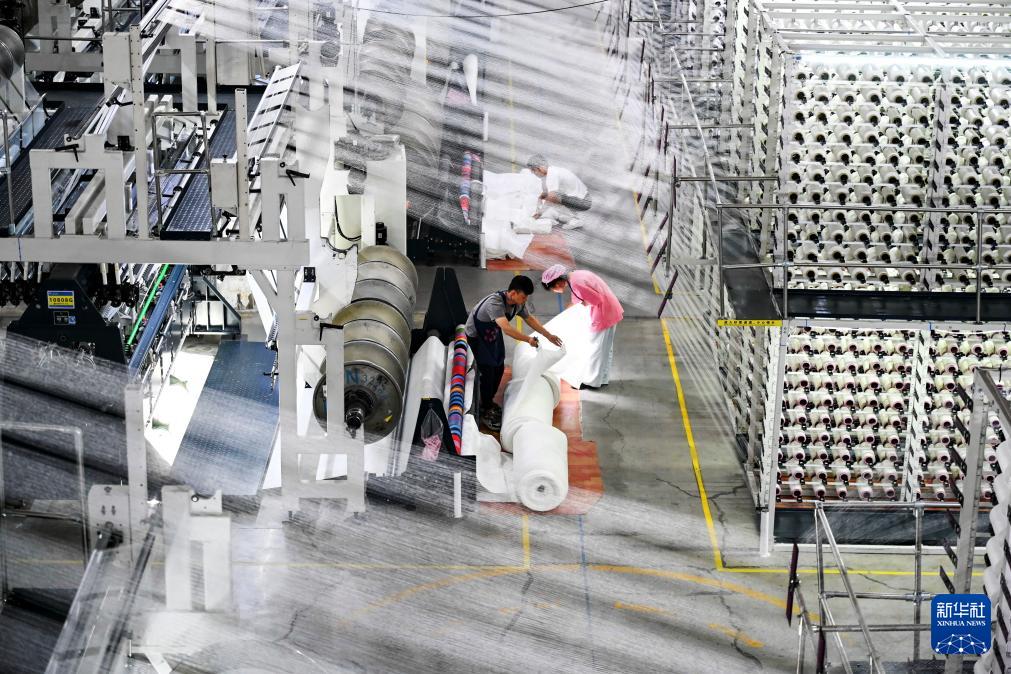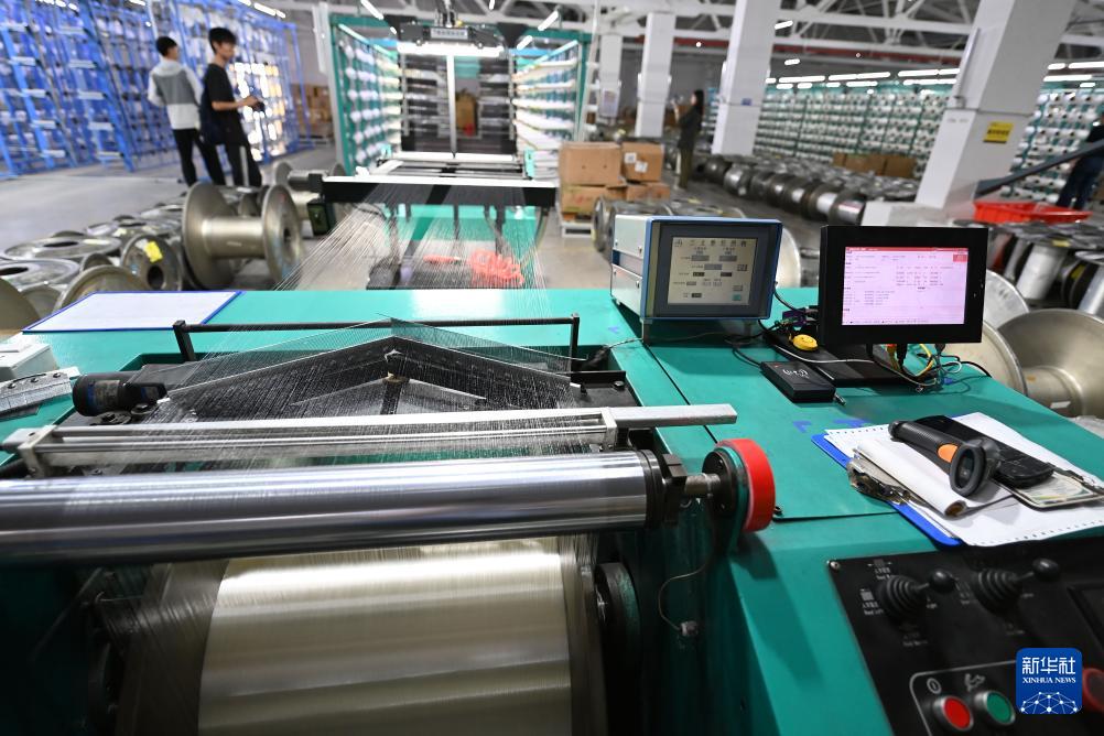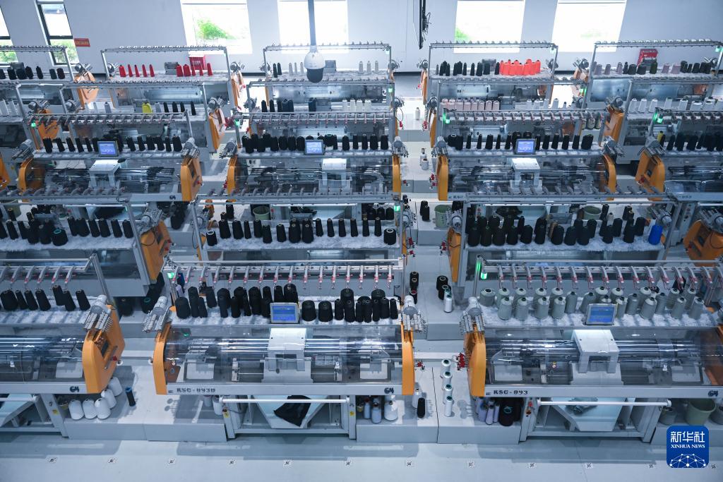 在信泰(石獅)科技有限公司智慧車間內(nèi),全自動(dòng)針織橫機(jī)滿產(chǎn)運(yùn)行。公司實(shí)現(xiàn)了數(shù)字化生產(chǎn),電腦一鍵下達(dá)編織指令,機(jī)器自動(dòng)拉紗線成布,一名工人能夠同時(shí)管理10多臺(tái)機(jī)器。