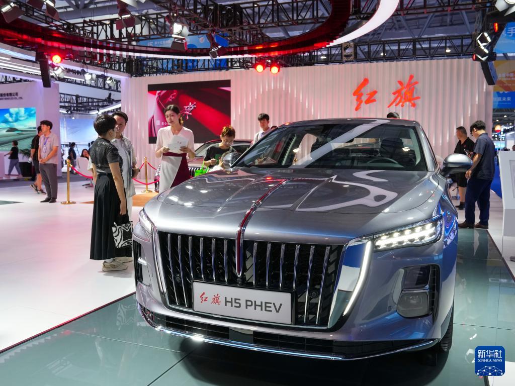 8月27日,人們在第十五屆中國-東北亞博覽會紅旗汽車展臺參觀。