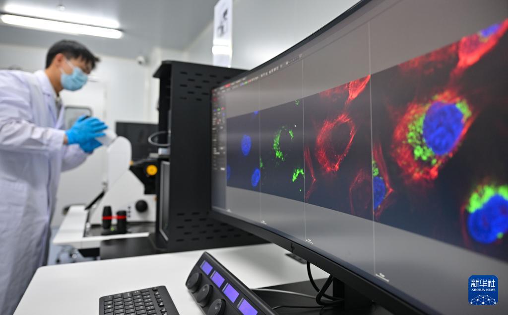 8月27日,三亞崖州灣科技城月亮島綜合實驗室的工作人員在操作激光共聚焦顯微鏡。??诤jP(guān)實驗室總面積5.6萬平方米,主要分布在??凇⑷齺?,共有8棟實驗室大樓。三亞崖州灣科技城月亮島綜合實驗室是其中之一。