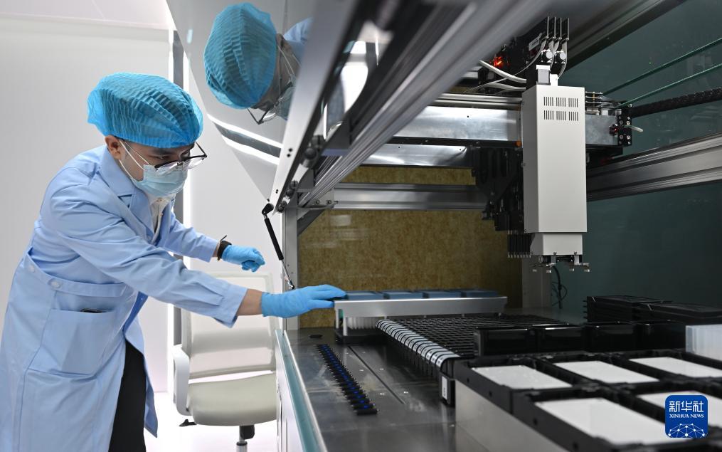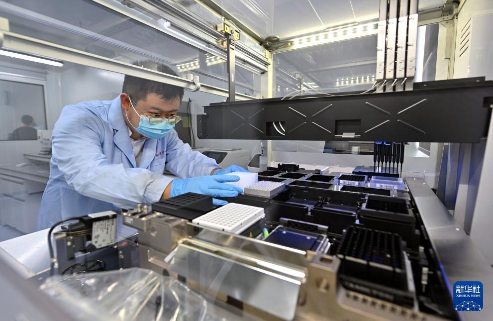 8月27日,三亞崖州灣科技城月亮島綜合實驗室的工作人員在檢查全自動酶免工作站。??诤jP(guān)實驗室總面積5.6萬平方米,主要分布在海口、三亞,共有8棟實驗室大樓。三亞崖州灣科技城月亮島綜合實驗室是其中之一。
