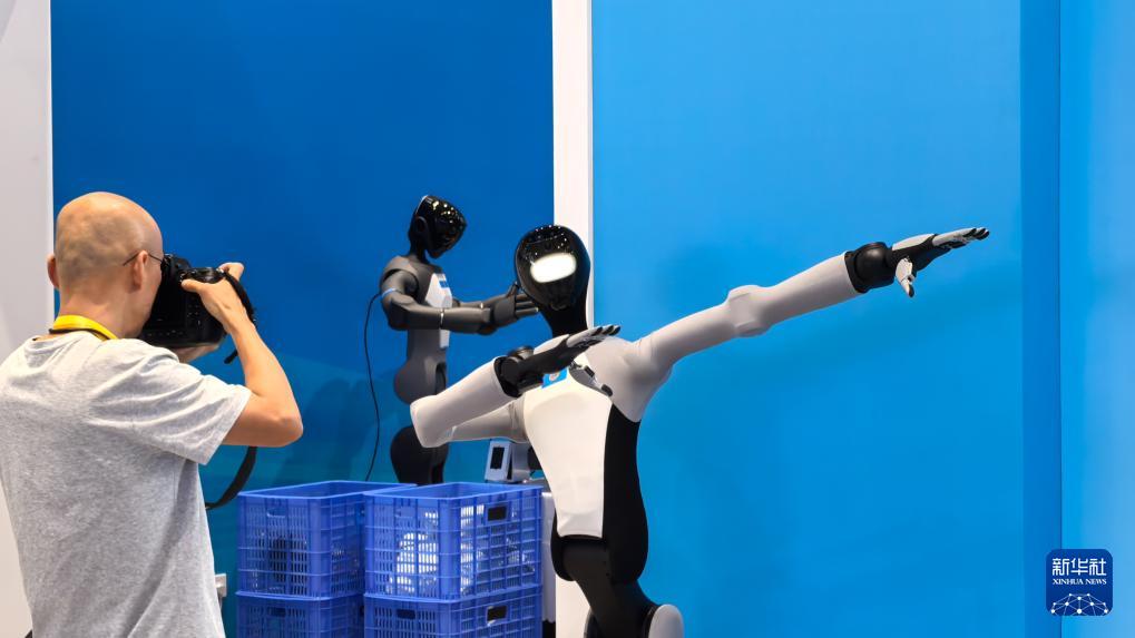 8月30日,一臺展示雙臂自由度的機(jī)器人在2025年上海合作組織峰會新聞中心吸引攝影師拍照。