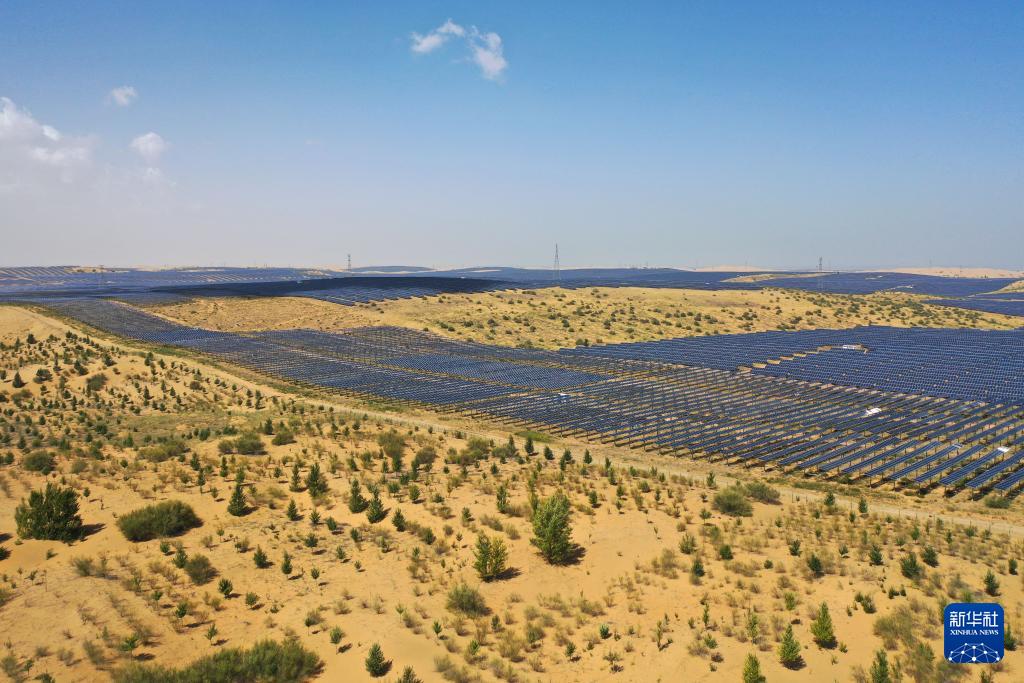 近年來,內(nèi)蒙古開展防沙治沙與風(fēng)電光伏一體化工程,推進(jìn)庫布其沙漠治理。目前,在鄂爾多斯市杭錦旗等庫布其沙漠北部地區(qū),一片片光伏基地在促進(jìn)新能源產(chǎn)業(yè)發(fā)展的同時(shí),成為當(dāng)?shù)厣鷳B(tài)治理、經(jīng)濟(jì)發(fā)展的堅(jiān)實(shí)屏障?!肮夥?生態(tài)治理”建設(shè)模式實(shí)現(xiàn)板上發(fā)電,板間、板下統(tǒng)籌兼顧特色生態(tài)修復(fù)、經(jīng)濟(jì)作物、造林綠化與技術(shù)創(chuàng)新,打造立體生態(tài)修復(fù)模式,讓沙海變成綠色電能涌動(dòng)的“藍(lán)?!保瑢?shí)現(xiàn)生態(tài)效益與經(jīng)濟(jì)效益共贏。