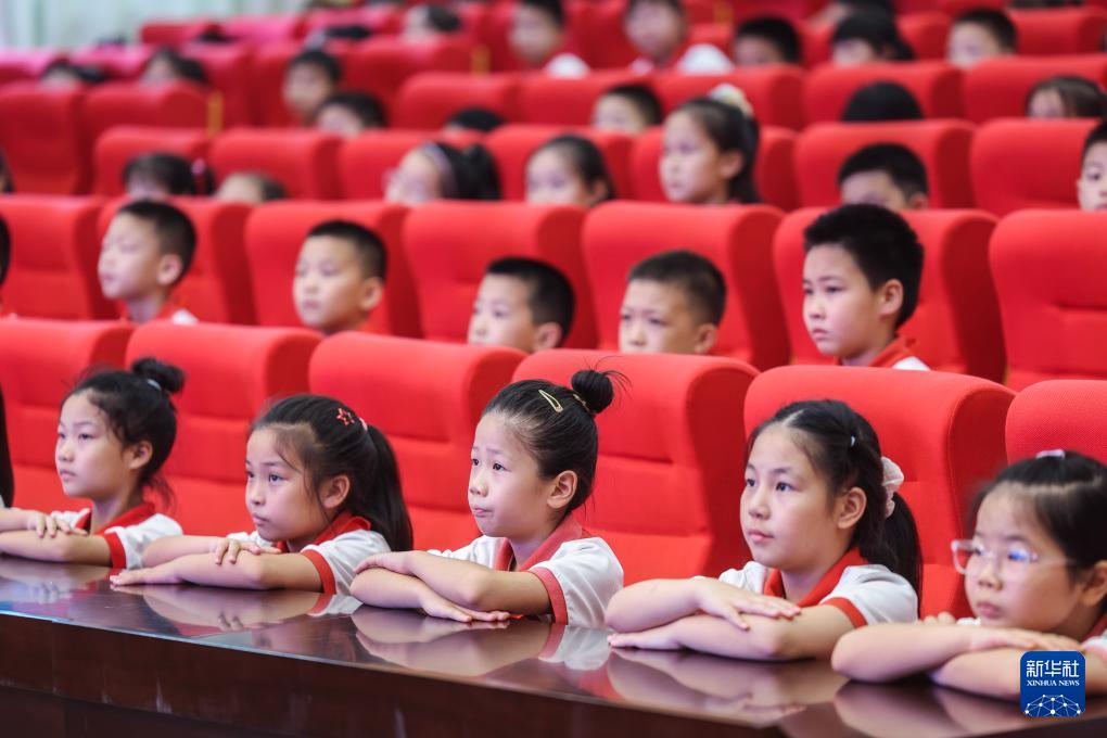 9月4日,北京師范大學南湖附屬學校的學生們在學校大講堂參加開學第一課《紅船精神》。