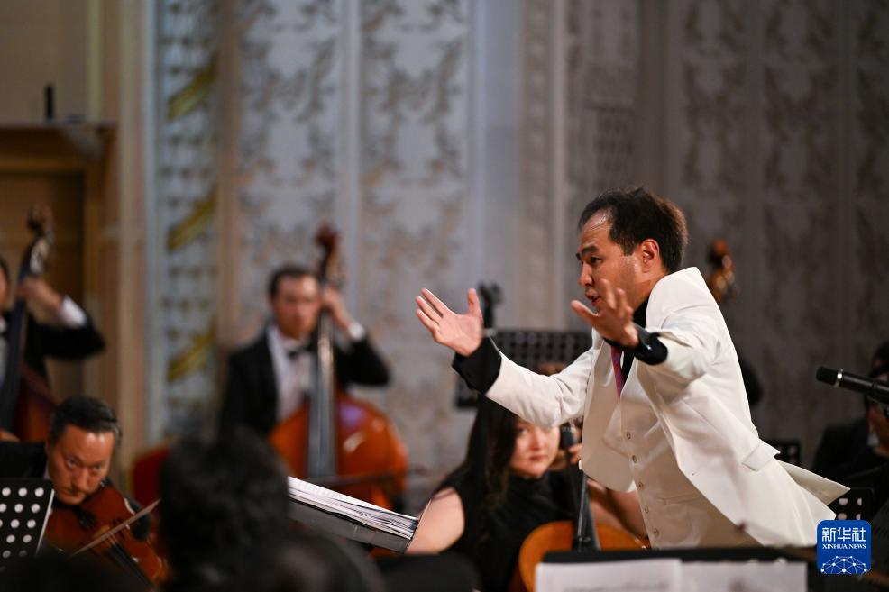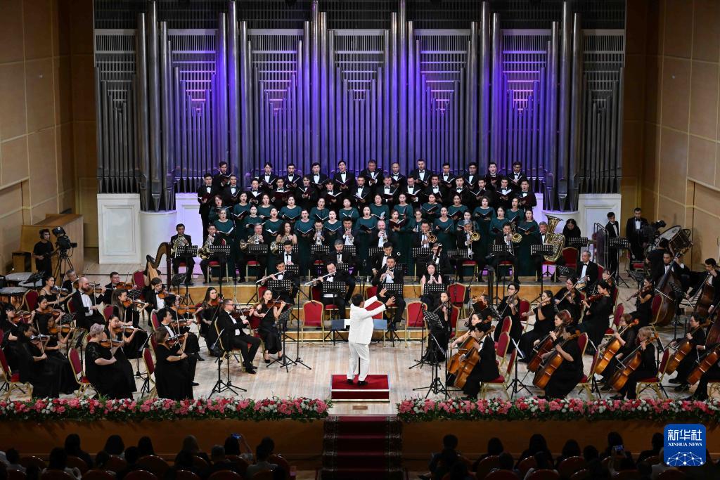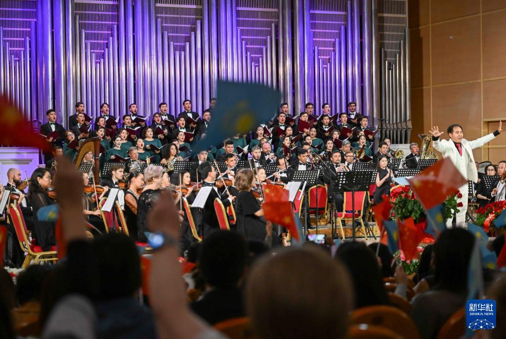 紀念中國人民抗日戰(zhàn)爭暨世界反法西斯戰(zhàn)爭勝利80周年、紀念冼星海誕辰120周年音樂會3日晚在哈薩克斯坦阿拉木圖的國立江布爾音樂廳舉行。阿市政府、外交領(lǐng)事機構(gòu)、老兵協(xié)會、當?shù)厝A僑華人、中資機構(gòu)、留學生等各界人士近600人出席。哈國立拜卡達莫夫合唱團、阿布德拉舍夫國立模范交響樂隊共同演繹《黃河大合唱》《阿曼蓋爾德》等作品。觀眾們自發(fā)揮舞中哈兩國國旗,齊聲高唱歌曲,現(xiàn)場氣氛澎湃激昂。