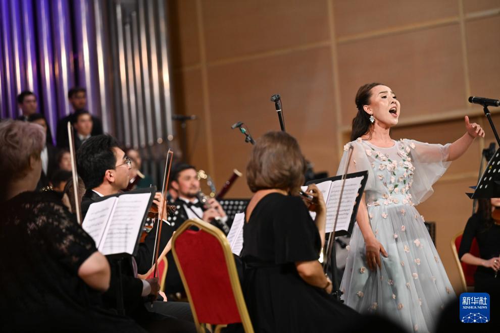 這是9月3日在哈薩克斯坦阿拉木圖拍攝的紀念抗戰(zhàn)勝利80周年音樂會現(xiàn)場。