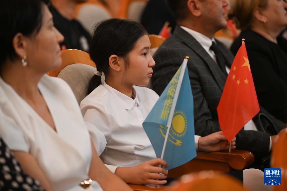 9月3日,在哈薩克斯坦阿拉木圖舉行的紀念抗戰(zhàn)勝利80周年音樂會上,觀眾們自發(fā)揮舞中哈兩國國旗,齊聲高唱《保衛(wèi)黃河》。