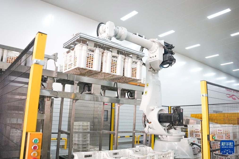 海南達(dá)川食品有限公司的全自動機械臂在投料作業(yè)(7月28日攝)。