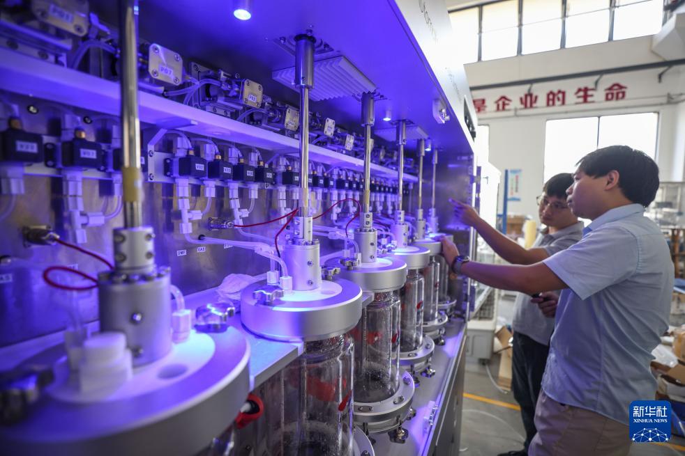 9月4日,海南建邦制藥科技有限公司的工作人員在測試多肽制藥設(shè)備。