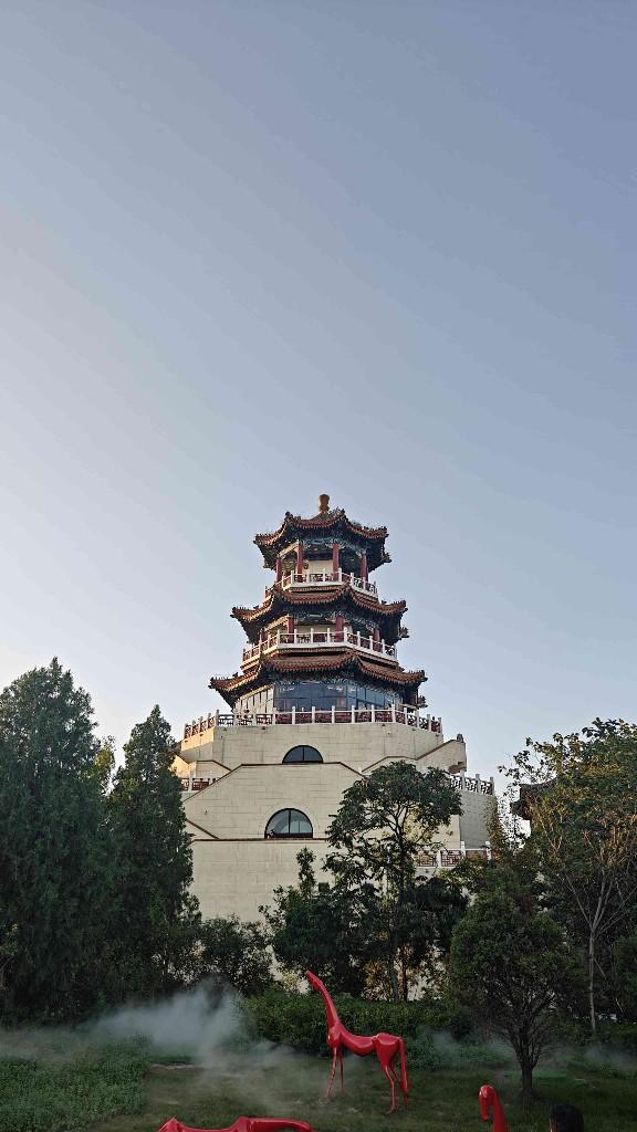 在永定河集北出口,新修的向河步道蜿蜒向上,直通石景山(本山)的觀景平臺?!拔覀冃陆?0米向河步道、提升改造了600米既有步道,改造提升后的石景山形成了南山小院、古建群、功碑閣三大文化景觀區(qū)域?!笔吧焦沤ㄈ何奈锉9芩L李偉介紹,游客逛完“永定河集”,直接從登山步道可至古建群區(qū)域,再從古建群登上功碑閣三層最高點,得以登高望遠(yuǎn),觀首鋼全貌、賞落日余暉。
