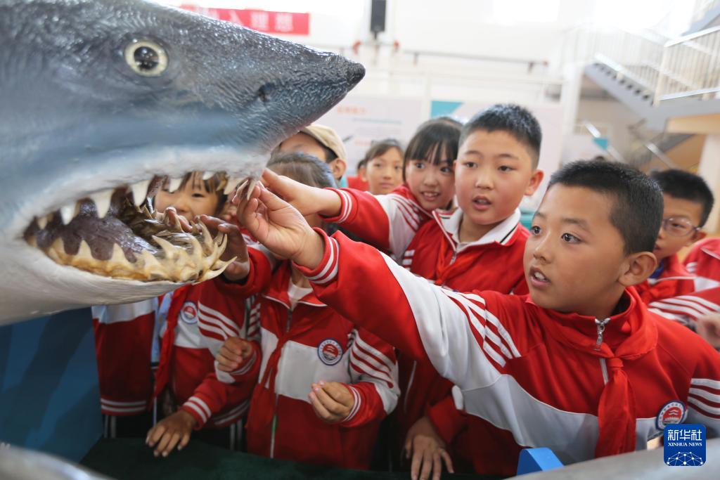 9月8日,在甘肅省定西市舉辦的“山海相依,筑夢蔚藍”山東青島·甘肅定西海洋科普東西部協(xié)作主題活動中,定西市安定區(qū)關川實驗學校的學生在觀看海洋生物標本。