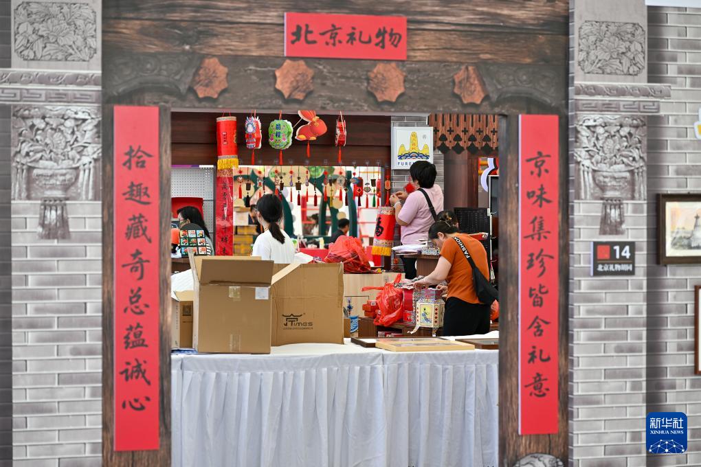 9月9日,服貿(mào)會(huì)文旅服務(wù)專題展的工作人員在布置展區(qū)。