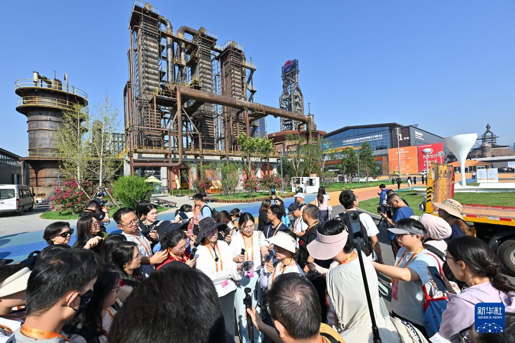 9月9日,媒體記者在首鋼園內(nèi)采訪。