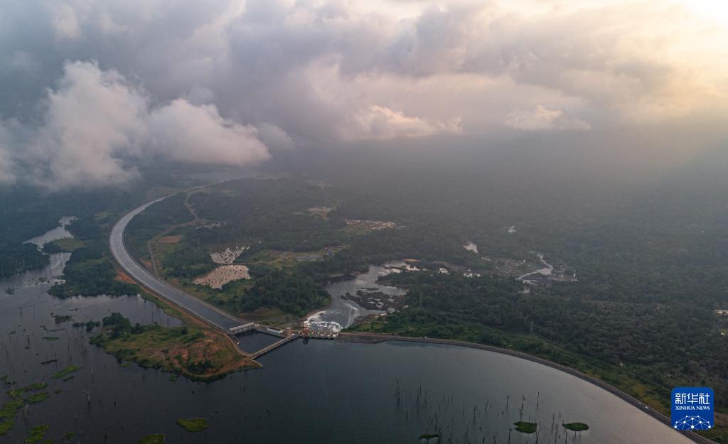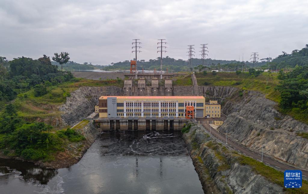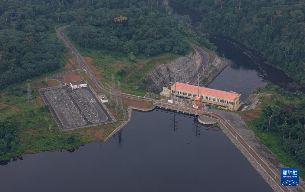 這是在喀麥隆南部大區(qū)拍攝的曼維萊水電站(無人機照片,6月29日攝)。