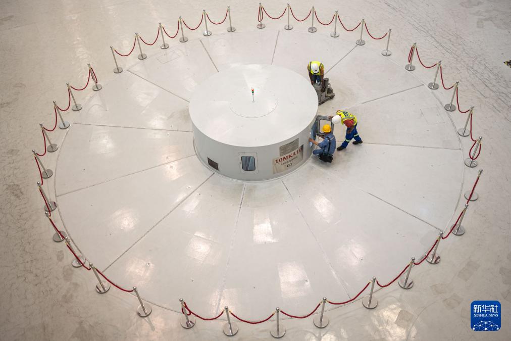 在喀麥隆南部大區(qū)的曼維萊水電站,工程師們檢查機組(6月30日攝)。