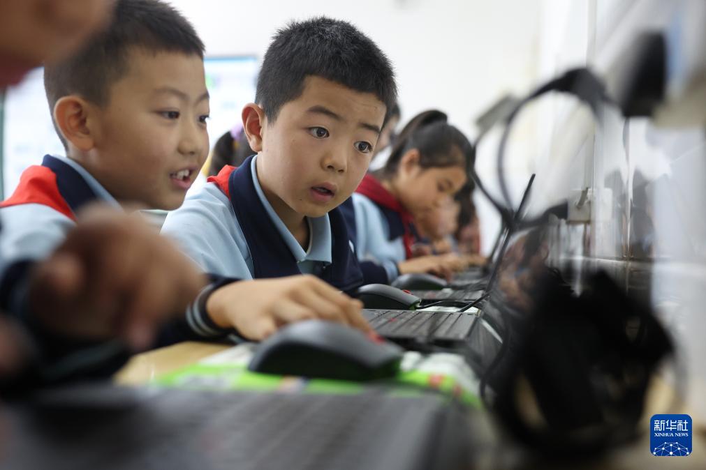 9月10日,鹽川學(xué)校的學(xué)生在再生電腦教室里體驗(yàn)AI課程。