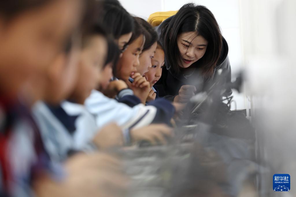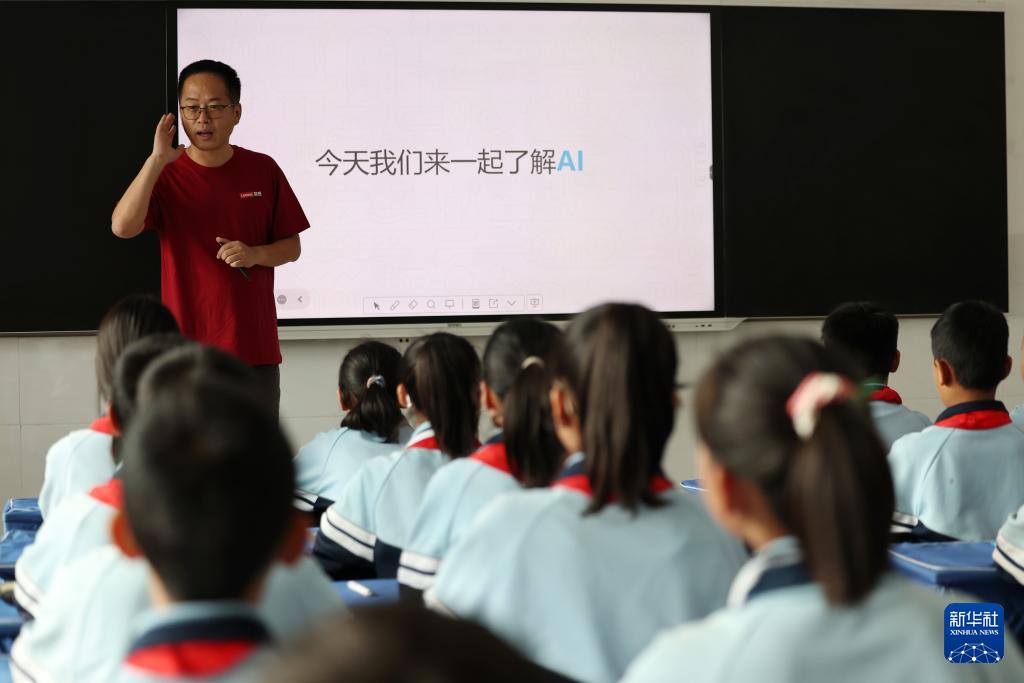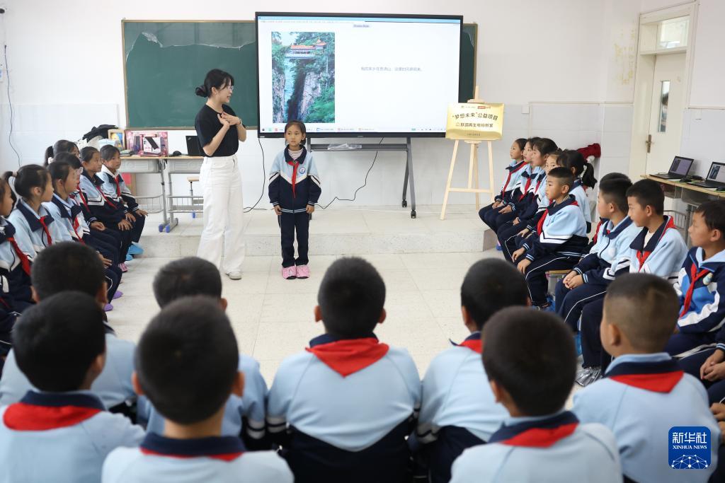 9月10日,鹽川學(xué)校的學(xué)生在AI課堂上與聯(lián)想志愿者互動(dòng)。