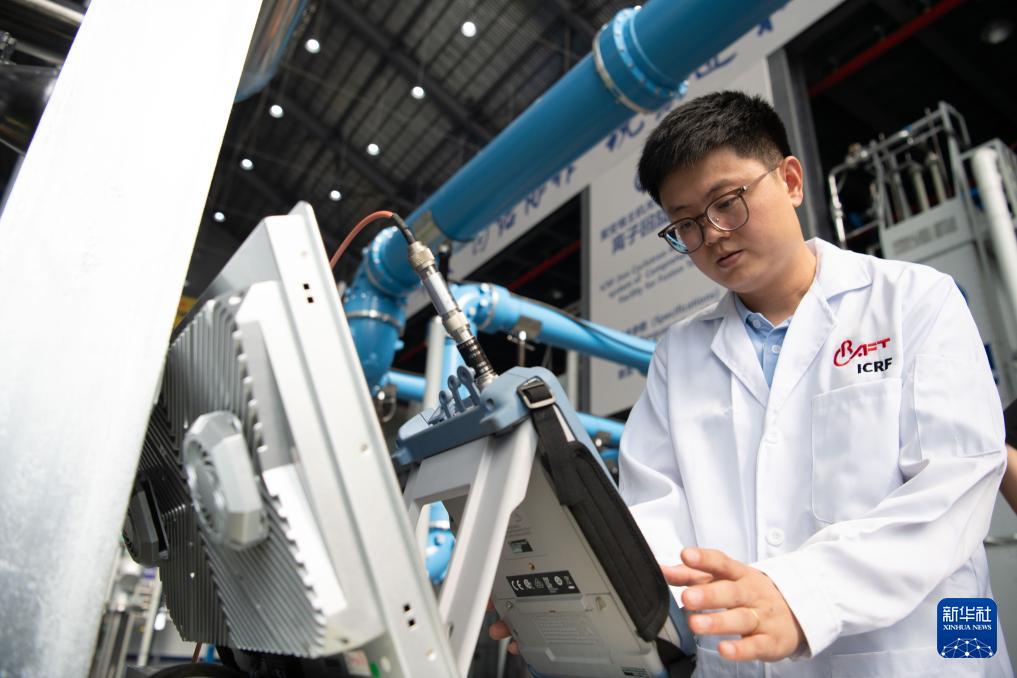 9月11日,在位于合肥市的聚變堆主機(jī)關(guān)鍵系統(tǒng)綜合研究設(shè)施園區(qū)內(nèi),科研人員在查看離子回旋加熱系統(tǒng)的運行狀態(tài)。