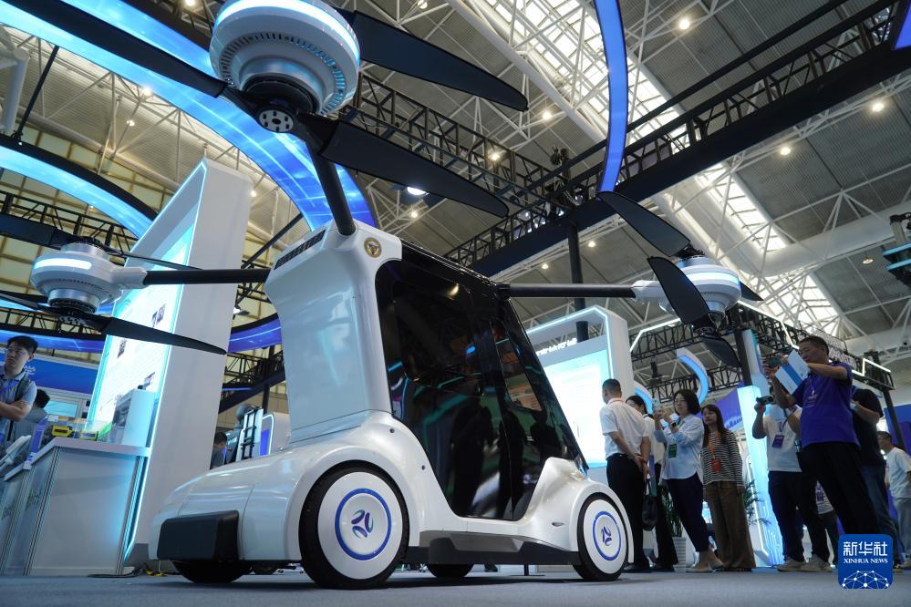這是9月11日江蘇產(chǎn)學(xué)研合作對接大會上展示的東大·鯤鵬1號分布式電驅(qū)動飛行汽車。