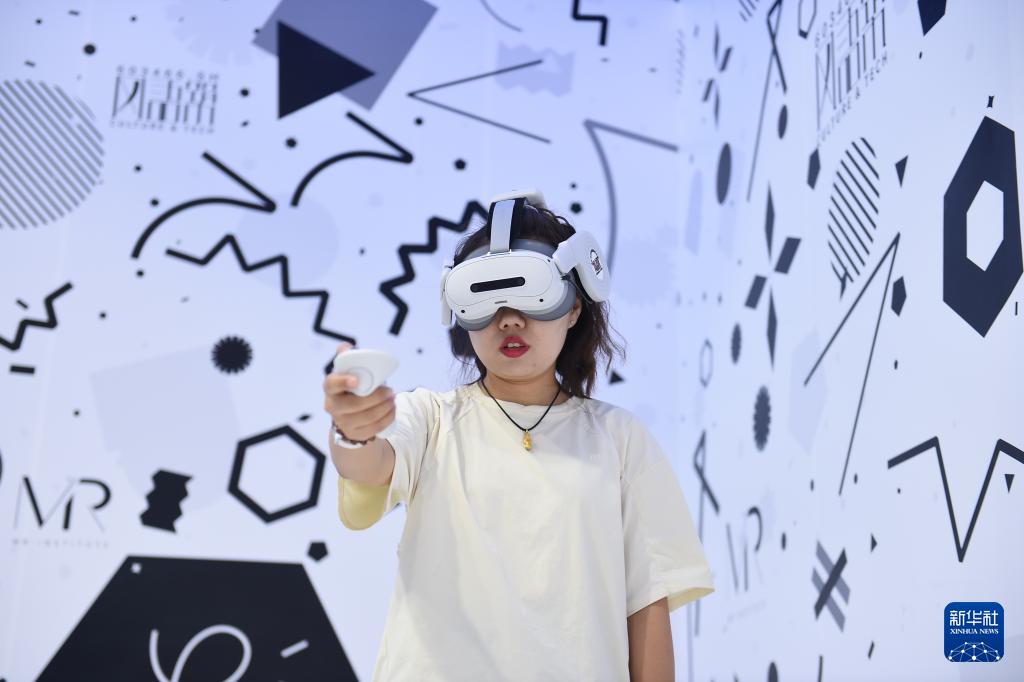 9月11日,參展者在文旅服務專題展區(qū)海淀展廳體驗沉浸式VR大空間項目。