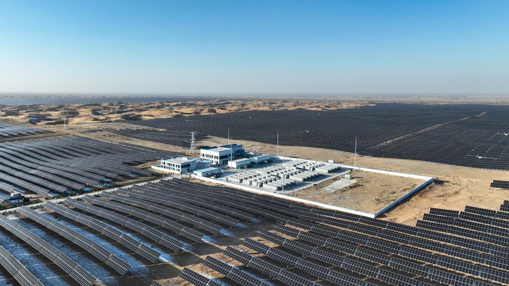 這是庫布其沙漠鄂爾多斯中北部新能源基地(無人機照片)。新華社記者 貝赫 攝