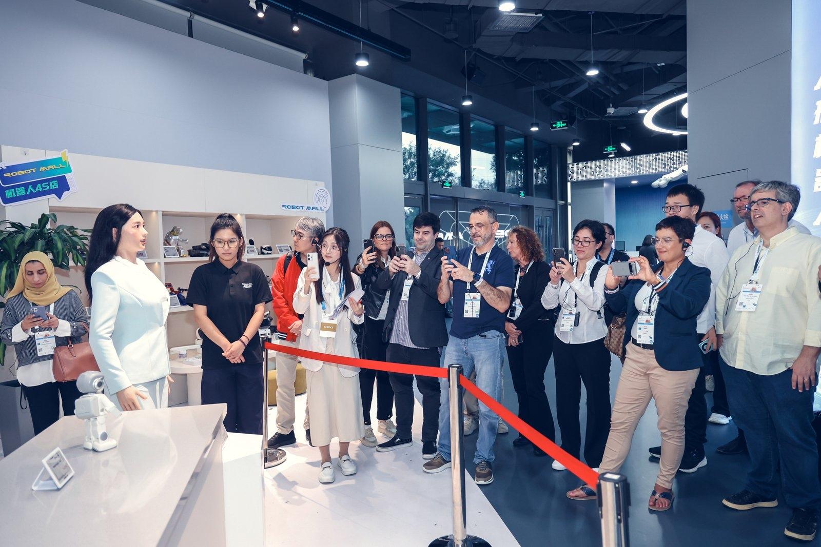 嘉賓們參觀了北京人形機(jī)器人創(chuàng)新中心展廳和“機(jī)器人大世界”應(yīng)用場(chǎng)景體驗(yàn)區(qū),深入了解具身智能技術(shù)的最新進(jìn)展。該中心作為國(guó)內(nèi)首個(gè)全棧技術(shù)布局的人形機(jī)器人研發(fā)機(jī)構(gòu),于2024年獲授“國(guó)家地方共建具身智能機(jī)器人創(chuàng)新中心”,正推動(dòng)感知、交互、運(yùn)動(dòng)控制等核心技術(shù)的突破與應(yīng)用轉(zhuǎn)化。