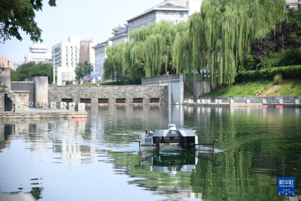 智能清潔船在西安護城河作業(yè)(2024年7月2日攝)。