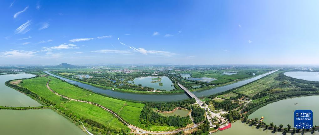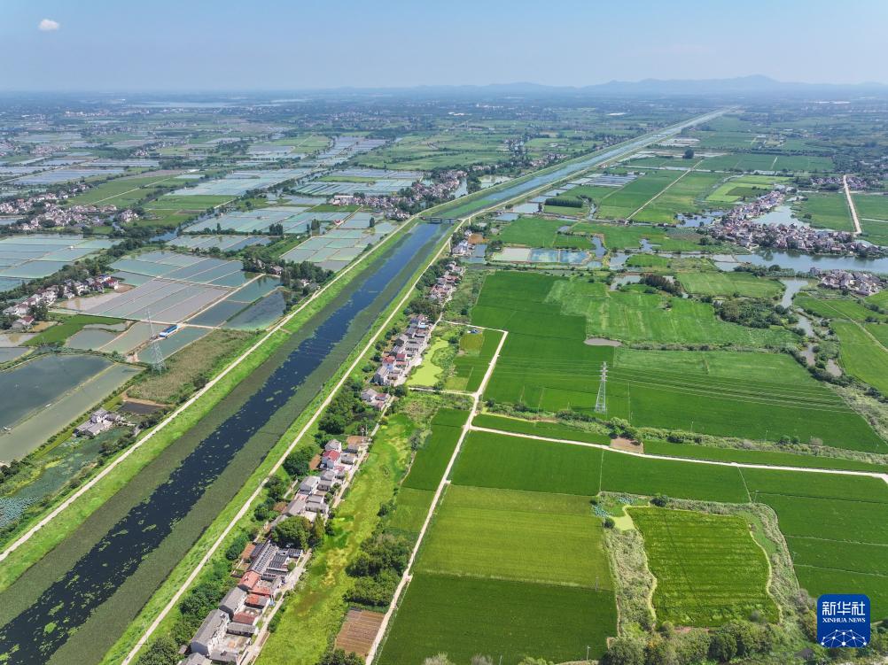 9月15日拍攝的江蘇句容赤山湖灌溉工程灌區(qū)(無人機全景照片)。