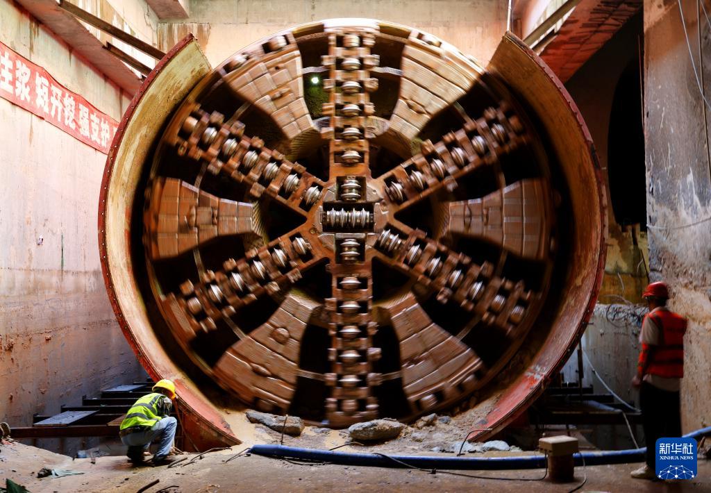 穗莞深城際前皇盾構(gòu)區(qū)1號盾構(gòu)機(jī)“廣興11號”順利出洞(9月16日攝)。