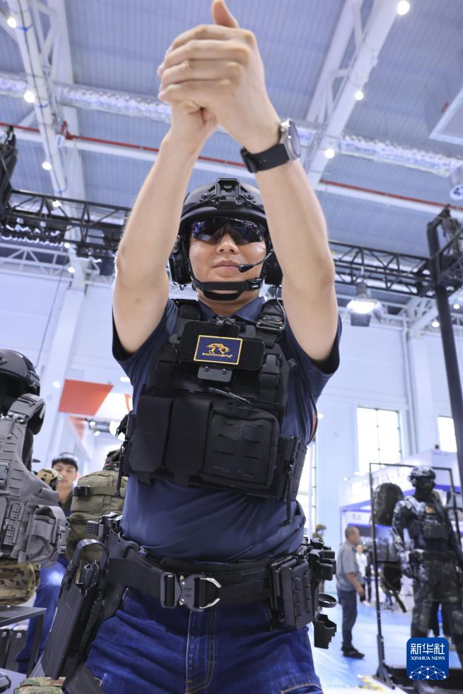 9月16日,在第二屆公共安全科技裝備展現(xiàn)場,工作人員展示新型模塊化作戰(zhàn)背心。