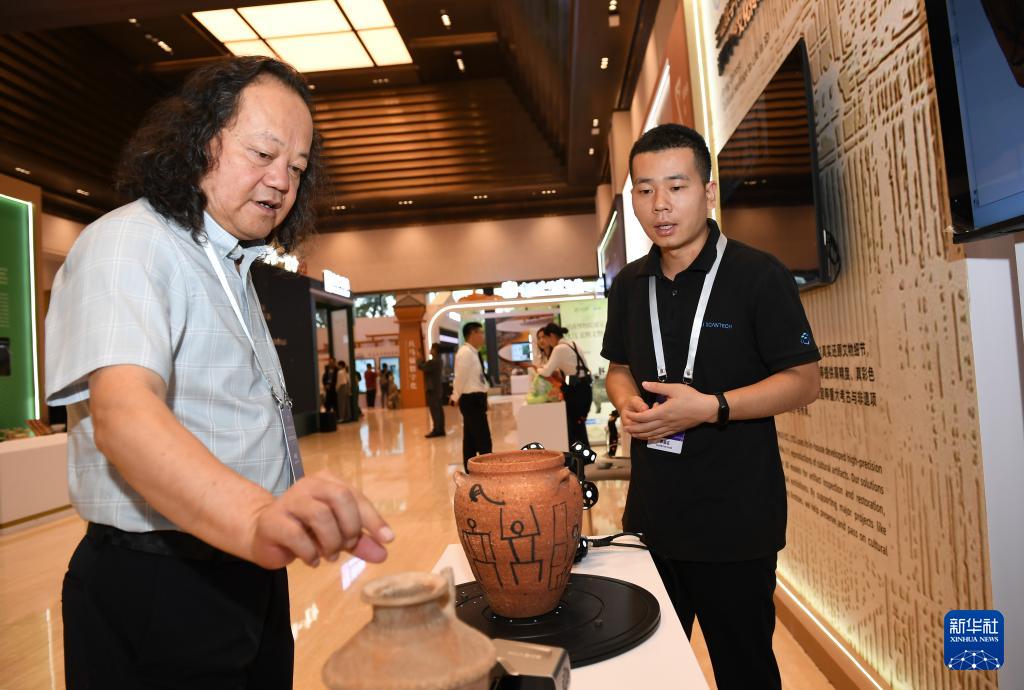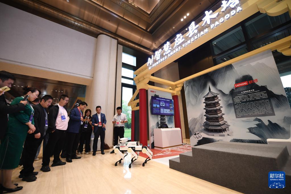 9月17日,與會(huì)嘉賓在論壇的文化遺產(chǎn)數(shù)字化精品項(xiàng)目展上了解AI智慧應(yīng)縣木塔數(shù)字化保護(hù)項(xiàng)目。