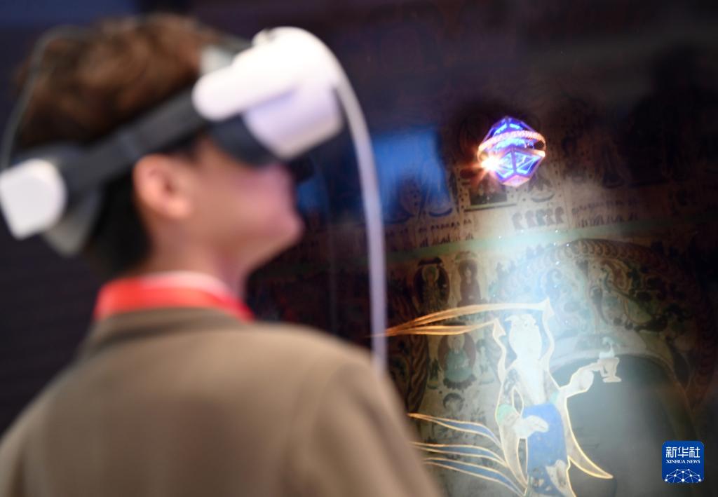 9月17日,與會(huì)嘉賓在論壇的文化遺產(chǎn)數(shù)字化精品項(xiàng)目展上體驗(yàn)敦煌研究院《尋境敦煌》項(xiàng)目。