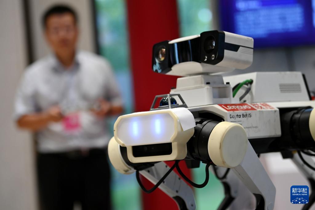 9月17日,工作人員在論壇的文化遺產(chǎn)數(shù)字化精品項(xiàng)目展上操作展示應(yīng)用于應(yīng)縣木塔數(shù)字化保護(hù)項(xiàng)目的聯(lián)想晨星六足機(jī)器狗。