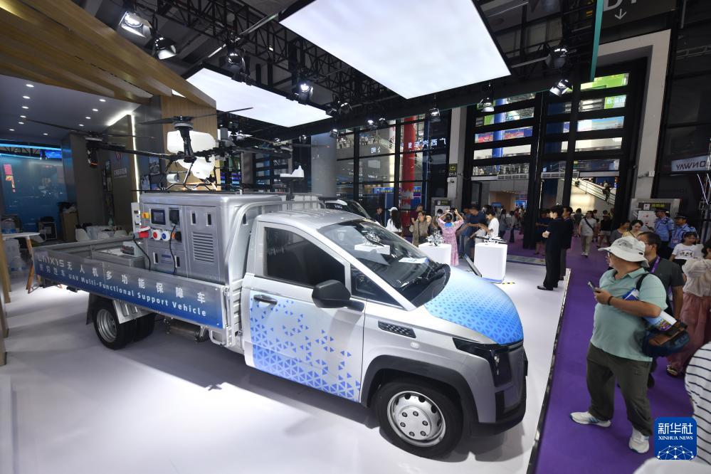 在南寧國際會展中心,觀眾參觀一款柳州產(chǎn)的無人機多功能保障車(9月20日攝)。