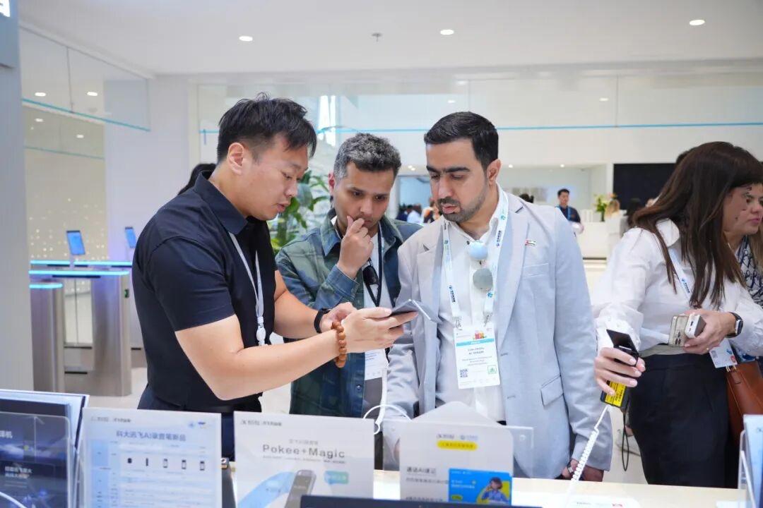 參訪中,訊飛的雙屏翻譯機(jī)吸引了代表團(tuán)的目光,大家爭(zhēng)先嘗試這款新發(fā)布的翻譯機(jī),其中還有一位代表更是直接入手了兩臺(tái)。