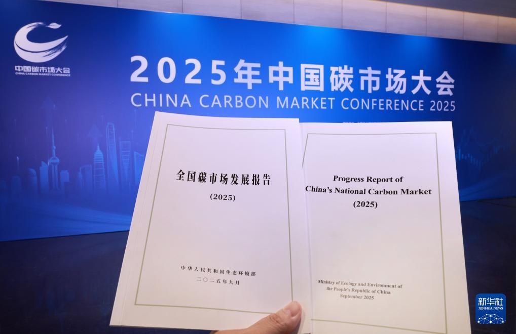 9月24日在2025年中國(guó)碳市場(chǎng)大會(huì)拍攝的《全國(guó)碳市場(chǎng)發(fā)展報(bào)告(2025)》。