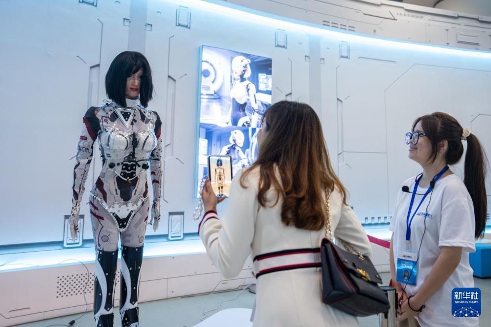 9月24日,在株洲國際會(huì)展中心,觀眾在觀看一臺(tái)人形機(jī)器人。
