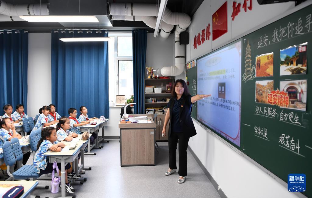 9月24日,老師為北京市第二十中學附屬育鷹小學學生教授國防教育基礎課《延安,我把你追尋》。
