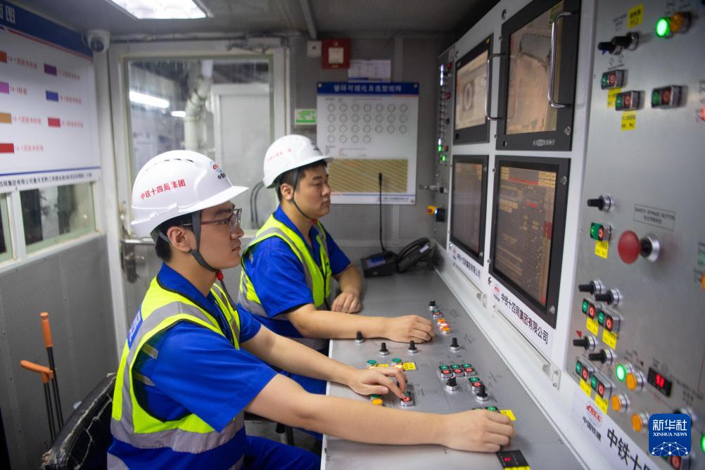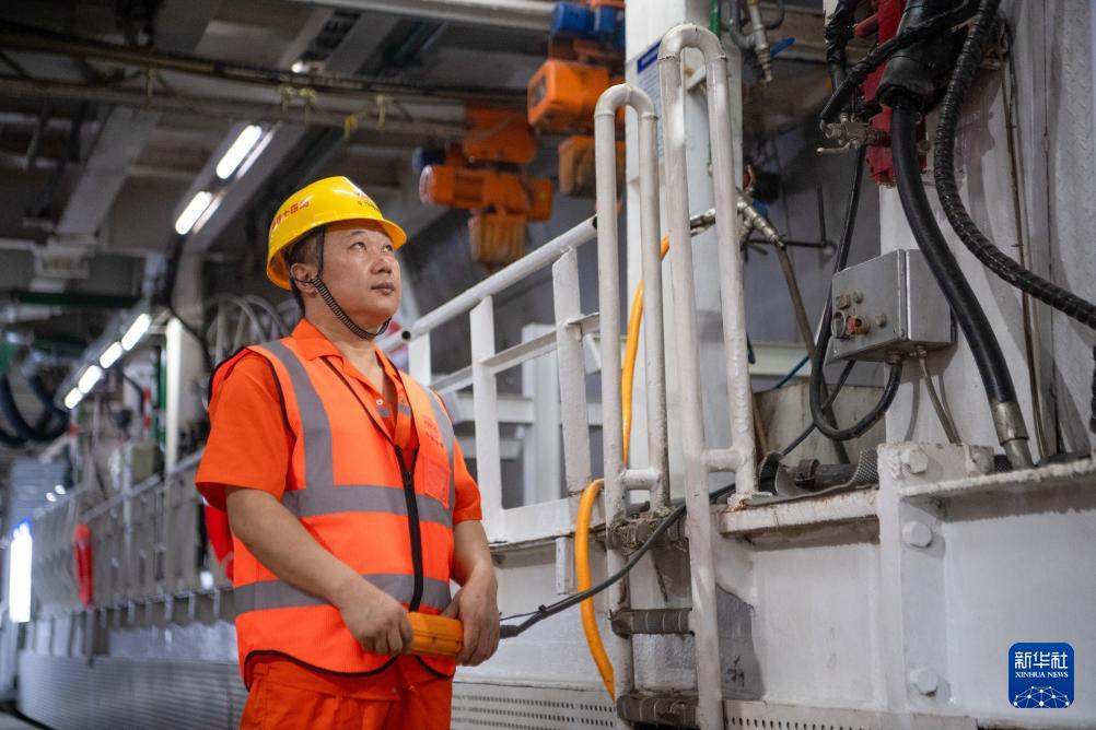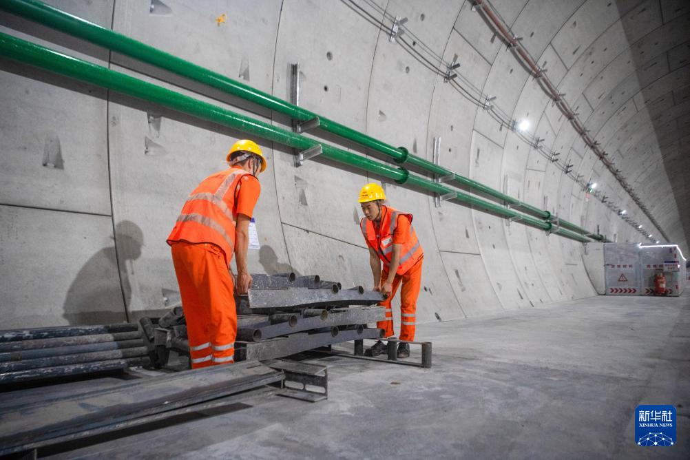 9月25日,工人在渝廈高鐵重慶菜園壩長(zhǎng)江鐵路隧道建設(shè)現(xiàn)場(chǎng)施工作業(yè)。