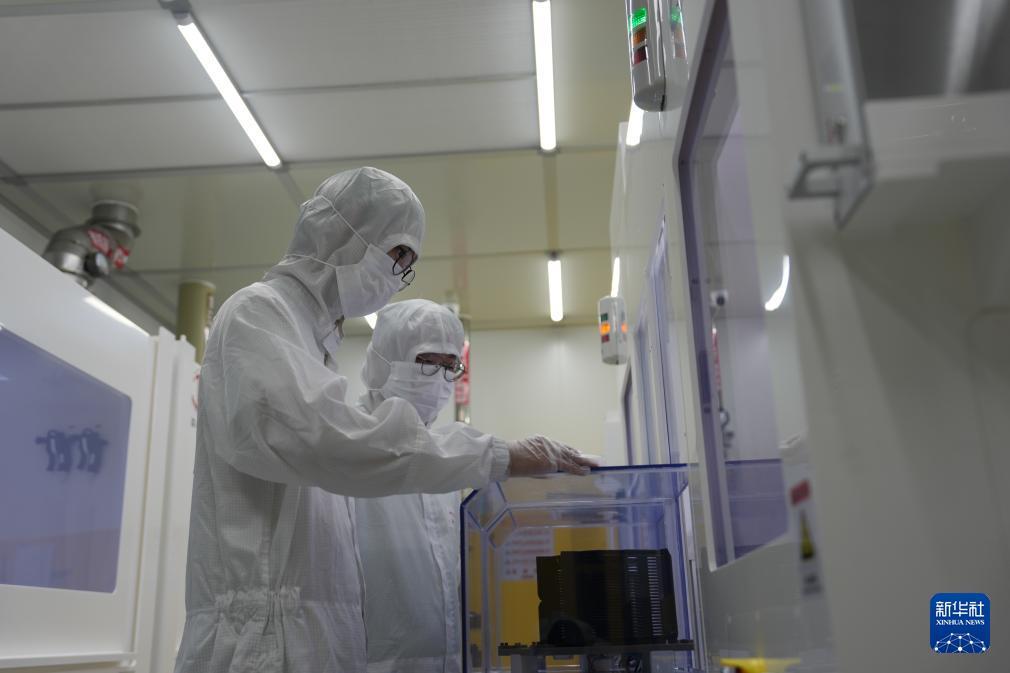 9月25日,工程師在上海交通大學(xué)無錫光子芯片研究院光子芯片中試線取片。