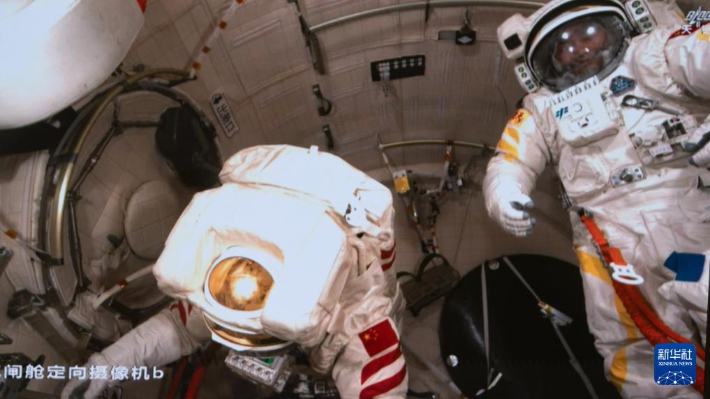 這是9月25日晚在北京航天飛行控制中心屏幕上拍攝的神舟二十號(hào)乘組航天員王杰出艙的畫面。