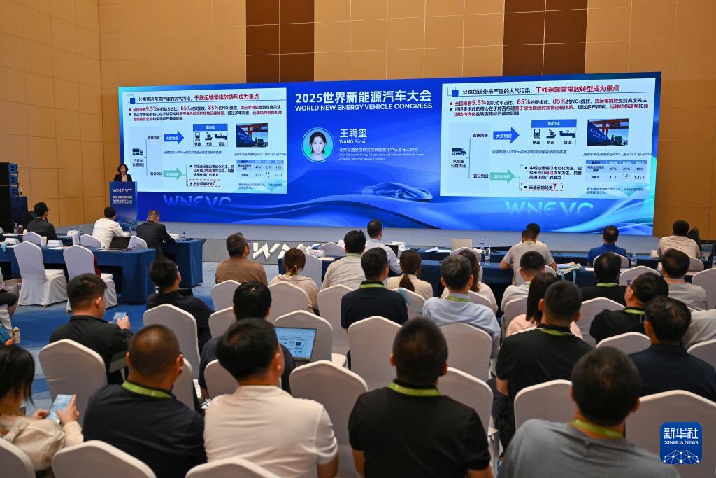 9月27日拍攝的2025世界新能源汽車大會“貨車零排放及基礎(chǔ)設(shè)施協(xié)同發(fā)展論壇”現(xiàn)場。