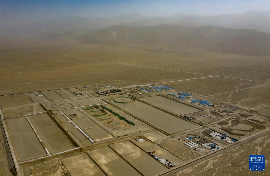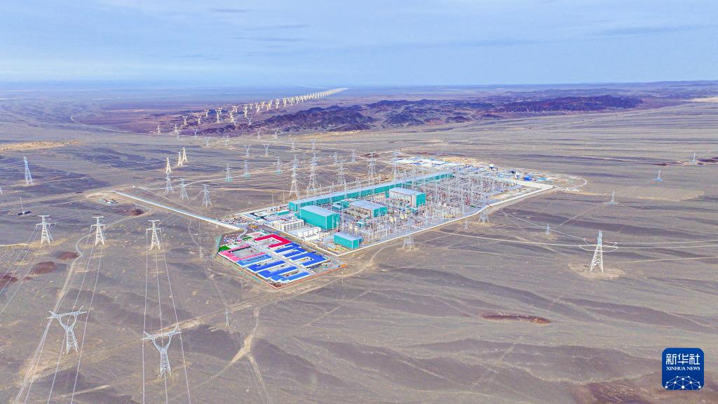 9月22日在新疆巴音郭楞蒙古自治州若羌縣拍攝的三峽集團(tuán)“疆電外送”第四通道電源項(xiàng)目施工現(xiàn)場(chǎng)(無人機(jī)照片)。
