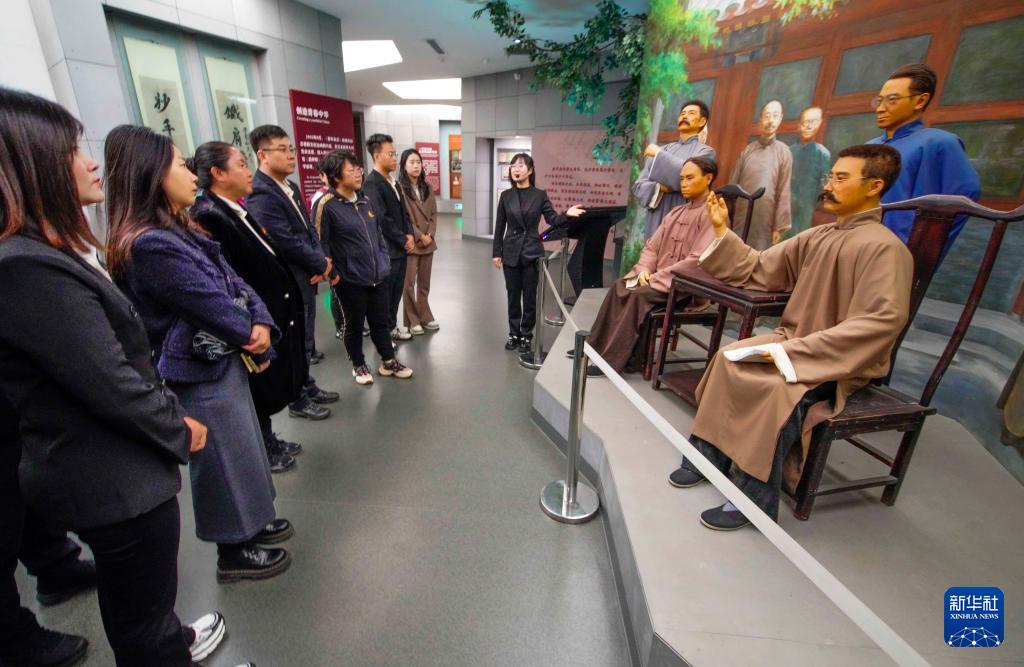10月8日,游客在河北省唐山市樂亭縣李大釗紀念館參觀。
